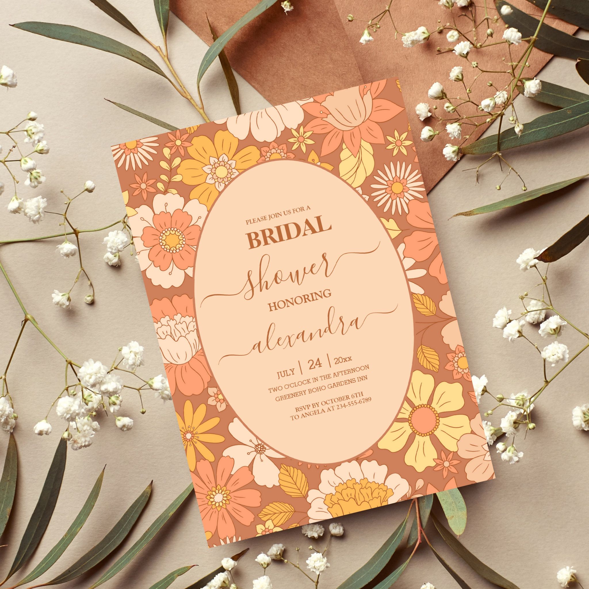 Celebrate the Retro Groovy 70's Themed Bridal . If you want to change the font style, color or text placement, simply click the "Customize Further" button. If you need my design on any other size or